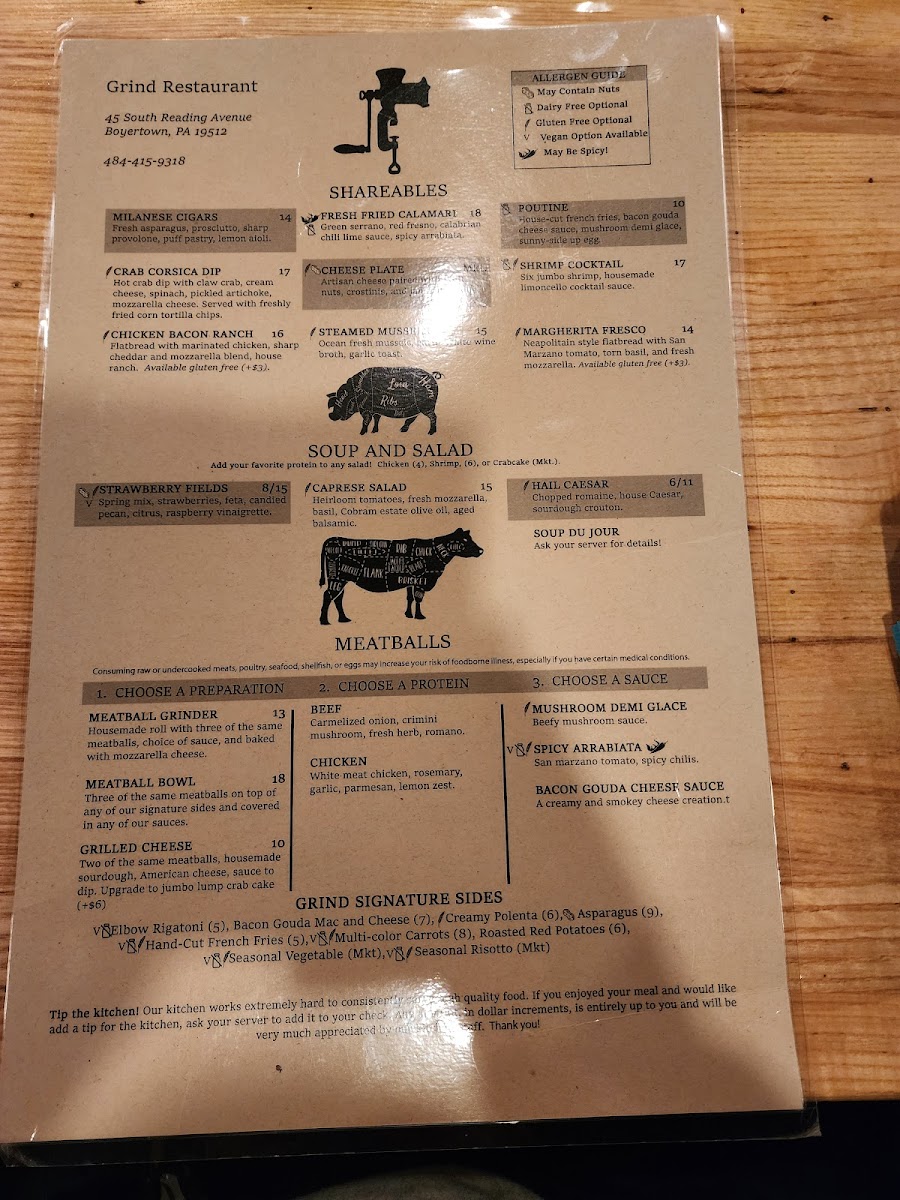 Welcome to Grind, a culinary gem nestled in the heart of Boyertown, Pennsylvania, located at 45 S Reading Ave. This vibrant eatery has earned a reputation for delivering an exceptional dining experience, fusing comfort with gourmet flavors in a casual atmosphere. From handcrafted cocktails to thoughtfully prepared dishes, Grind captures the essence of what makes a restaurant truly memorable.